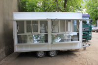 Двуосный торговый прицеп серии Стандарт с полной массой 2500 кг и внутренними размерами 3,9 х 2,0 х 2,0 м Комплектация прицепа с двумя холодильными витринами и холодильным шкафом