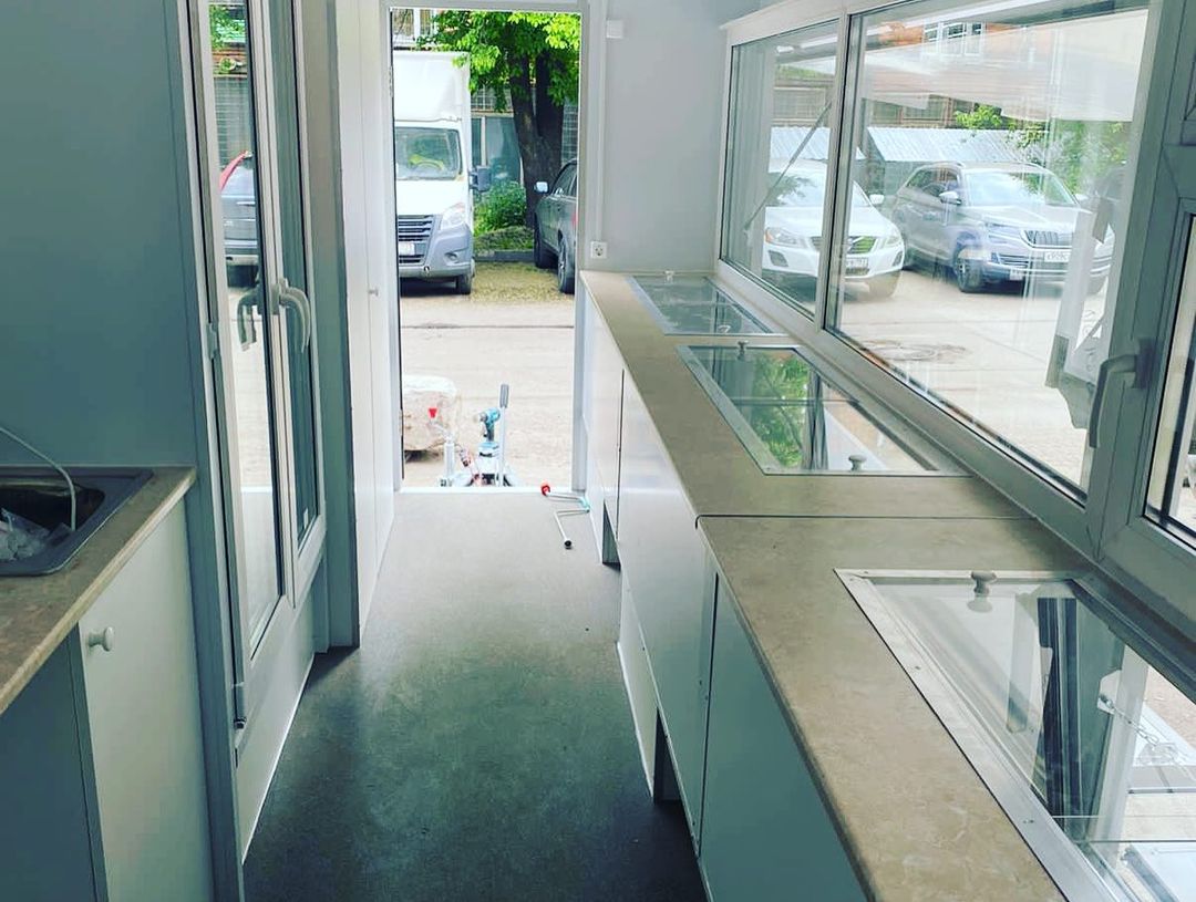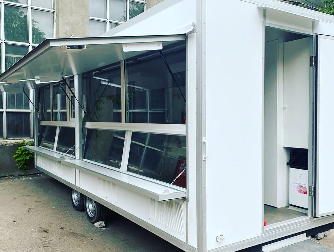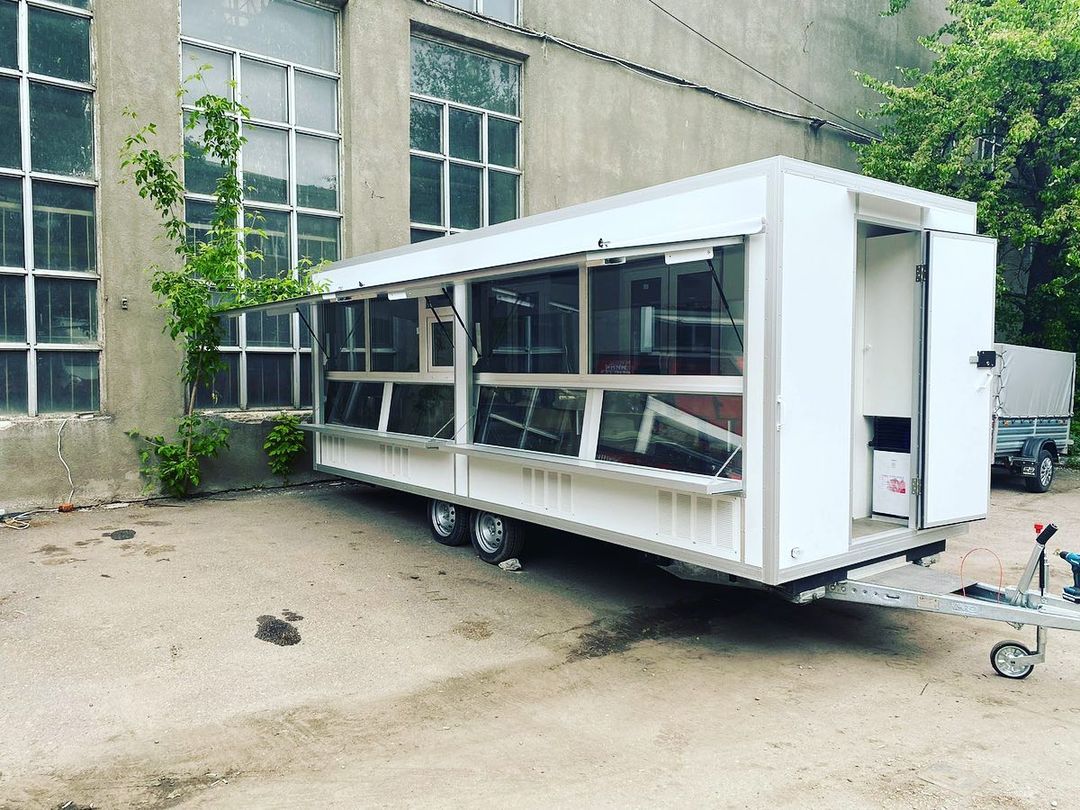 Комплектация прицепа с четырьмя холодильными витринами и холодильным шкафом